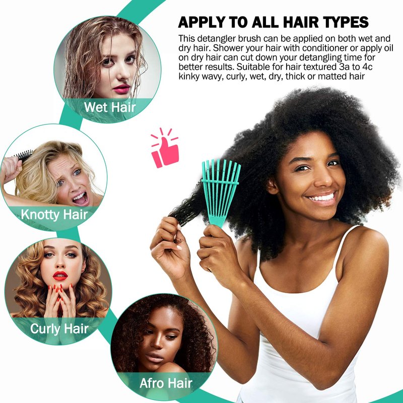 If you have super curly 3a to 4c African American hair, our brush for curly hair is the perfect tool for you, its flexible bristles detangling your wet/dry hair with conditioner/oil applied smoothly and easily. If you have normal tangling or very long thick hair, this brush can also be your choice.