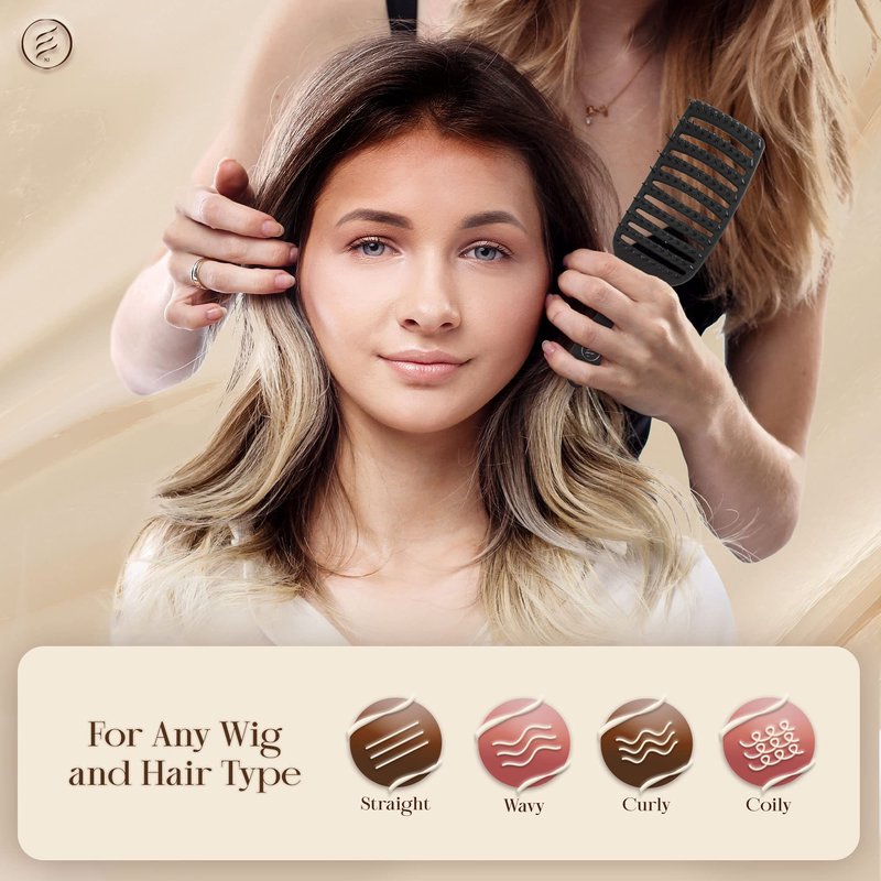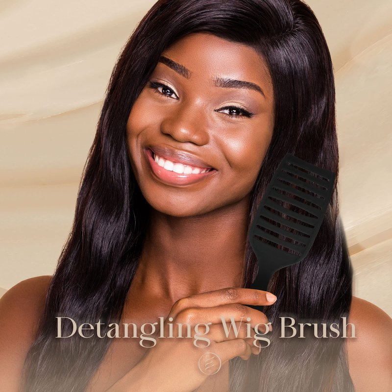 ESTEE WIG SALON - DETANGLING WIG BRUSH FOR EVERY HAIR TEXTURE The Wig Wizard For Silky Smooth, Flawless Hair THE ONE AND ONLY BRUSH TO DETANGLE & STYLE YOUR WIGS Professionally developed to care for any type of wig – as well as your natural hair - our wig brush can untangle and smoothen any wig without ever pulling strands out of your wig. CURVED DESIGN TO DETANGLE & MASSAGE YOUR HAIR This curved brush, along with its ergonomic, non - slip handle reaches every inch of your hair and scalp to offer the smoothest h air brushing experience you have ever tried. VENTED BRUSH TO CUT YOUR BLOW DRYING TIME DOWN By allowing air to pass through the brush, our vented wig brush can significantly reduce blow - drying time. Plus, it's heat resistant so you can use it with any of your favorite hair dryers. ZERO TANGLES. ZERO BREAKAGE. ZERO FRIZZ. Our innovative wig brush ensures a tangle - free, anti - frizz finish to leave your hair feeling as soft and smooth as ever without causing split ends, b reakage or frizz. PERFECT FOR ANY WIG AND ANY HAIR TYPE - Straight - Wavy - Curly - Coily / Type 4 Hair - Natural, Human Hair Wigs - Synthetic Wigs & Toppers - Hair Extensions DEFINE. UNTANGLE. SM OOTH. STYLE. THE GENTLEST CARE FOR WET & DRY HAIR EXTRA - DURABLE DESIGN FOR ENDLESS USES Made of highly durable, unbreakable materials, our soft bristle brush will remain in great condition even after years and years of use. TR IED & TRUSTED BY PROFESSIONALS Widely used by hair wig artists and hair experts, you have every good reason to trust the performance of our wig brush yourself! THE BEST WAY TO MAINTAIN, STYLE & PROLONG THE LIFE OF YOUR WIG. ORDER YOURS TODAY!