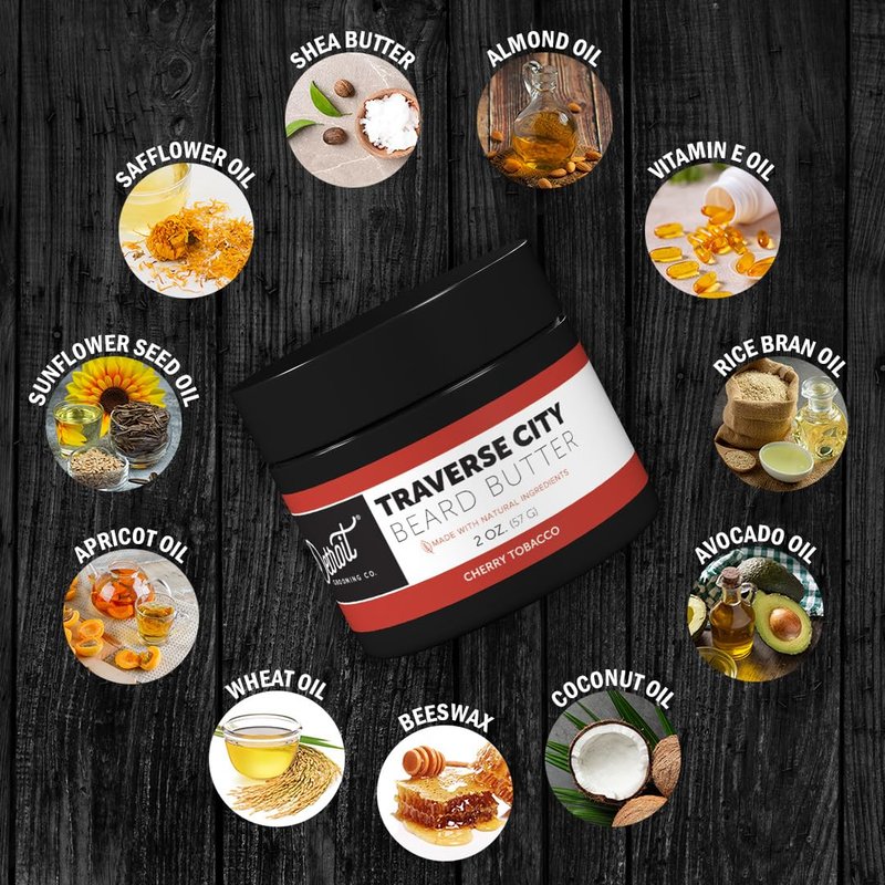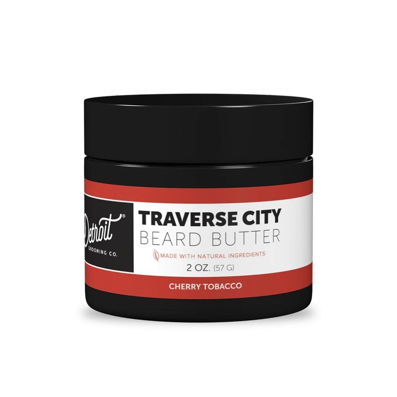Detroit Grooming Co. Men's Beard Butter - Soften, Thicken, Hydrate, and Rejuvenate Your Beard with Safflower Oil and Shea Butter - Styling Essentials - Cherry Tobacco - Traverse City -2oz