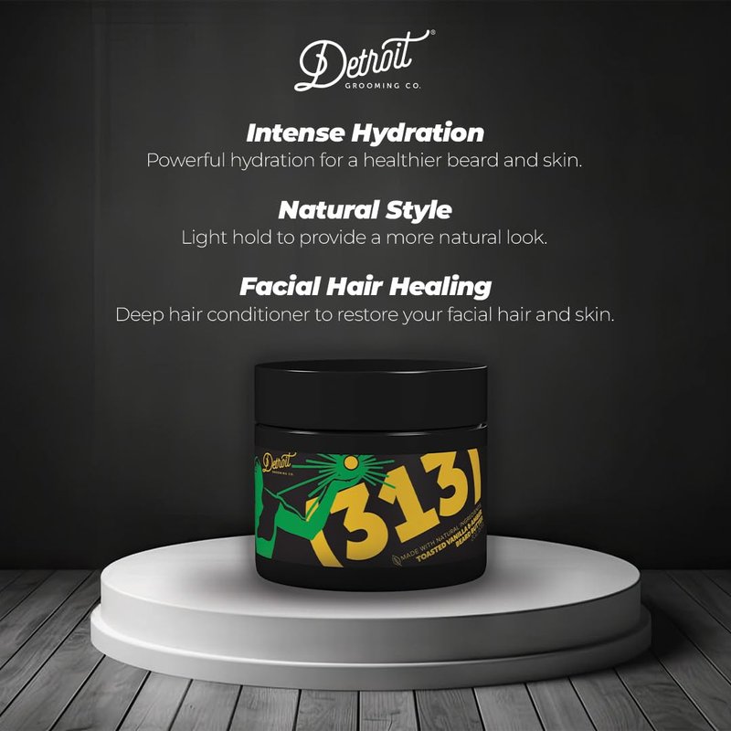 Introducing Detroit Grooming Co. Beard Butter, the ultimate solution for your beard care needs. Our all-natural beard butter for men provides intensive moisturization and hydration to both your beard and skin. With nourishing ingredients like Shea Moisture and essential oils, this deep hair conditioner promotes a healthier beard and skin. Experience the benefits of hydration as your beard becomes softer and more manageable.Our beard butter not only hydrates but also offers a light hold for a natural and styled look. Effortlessly tame and groom your beard for a well-maintained appearance. Say goodbye to dry, coarse facial hair and skin – our deep conditioning beard butter helps restore and heal, leaving you refreshed and rejuvenated.Detroit Grooming Co. Beard Butter is the go-to choice for beard care enthusiasts. Our carefully formulated balm is perfect for intensive moisturization and natural styling. Treat yourself to healthier, softer facial hair and enjoy the confidence of a well-groomed appearance.Choose Detroit Grooming Co. Beard Butter for a deeply hydrated beard and skin, a well-styled and tamed beard, and an easy-to-groom routine. Trust the brand known for exceptional beard care products. Take your beard care to the next level and enjoy the results of a nourished and well-maintained beard.