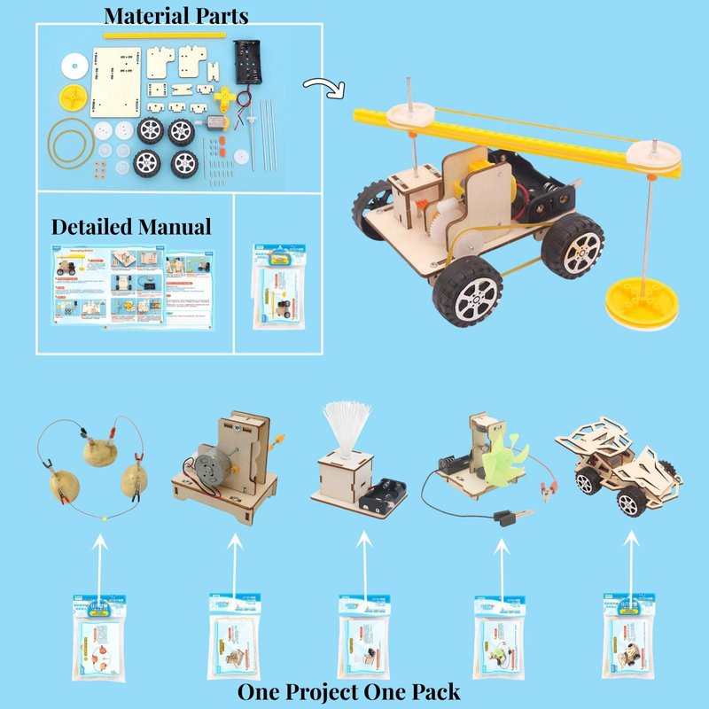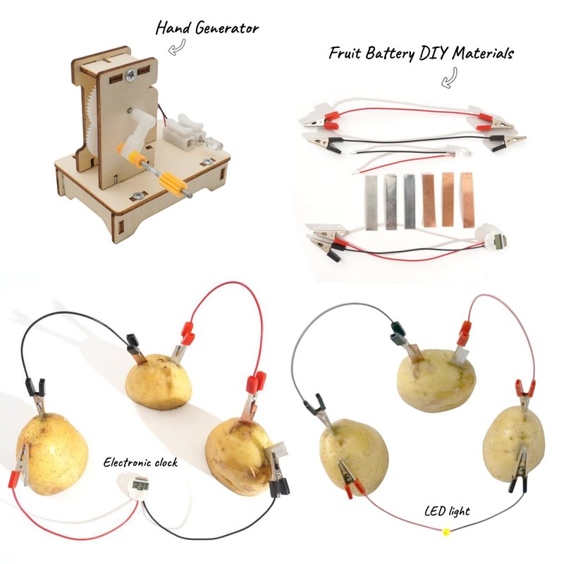 - Project A - Hand Crank Generator Model : Children can easily DIY a hand-cranked generator model step by step with the help of detailed assembly instructions. Through this science experiment, they can learn how to convert kinetic energy into electrical energy and start the journey of STEM courses. Great for Classroom Demonstrations.