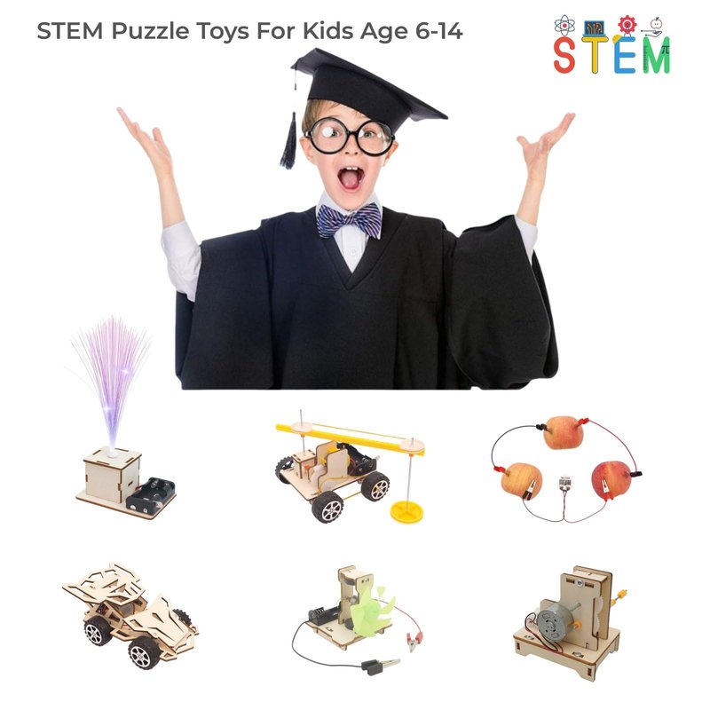 DEUXPER 6 in 1 STEM Puzzle Toys, Science Kits for Kids Age 8-12, Wooden 3D Puzzles Model Projects, Children's DIY Science Building Toy, Birthday Gifts for Girls Boys 6 7 8 9 10 11 12 13+
