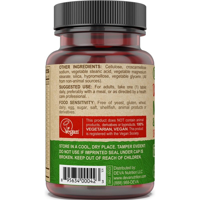 - VEGAN CERTIFIED: The DEVA Tiny Tablets Multivitamin & Mineral supplement is 100% animal-free and vegan third-party certified by the Vegan Society. All our vegan vitamins and supplements are guaranteed for purity, freshness, and labeled potency.