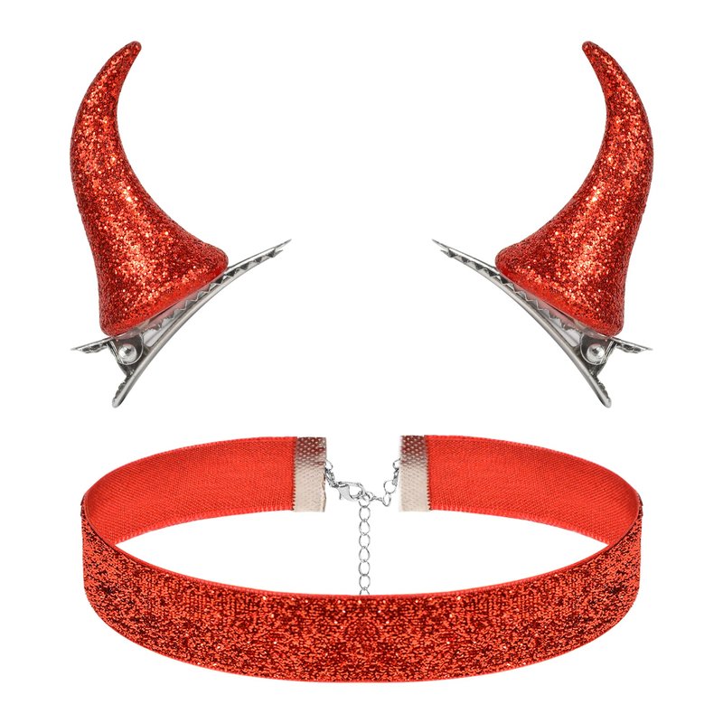 - Halloween Costume Accessories: The glitter demon horns hair clip and collar set adds a splash of color to your Halloween devil costume. The red devil horns match well with any devil costume for women or Halloween costume and is an essential Halloween accessory. It is suitable for both young and old and makes a perfect present for family and friends. Complete your Halloween look with these dazzling devil horns and enjoy a fun-filled party