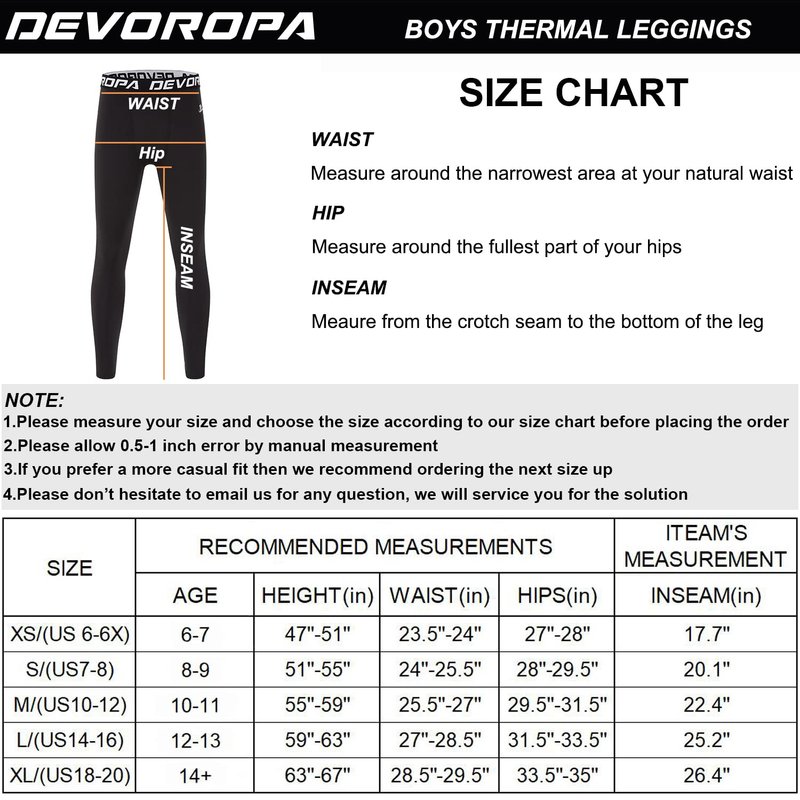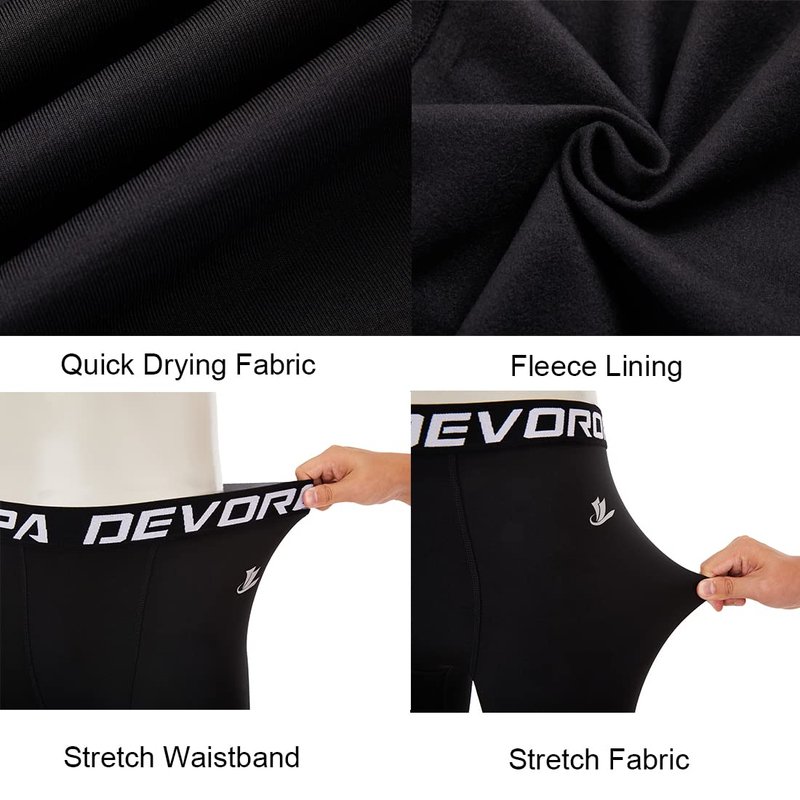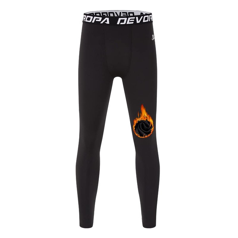 DEVOROPA Youth Boys' Compression Leggings Sports Tights Fleece Lined Thermal Base Layer Pants Black M