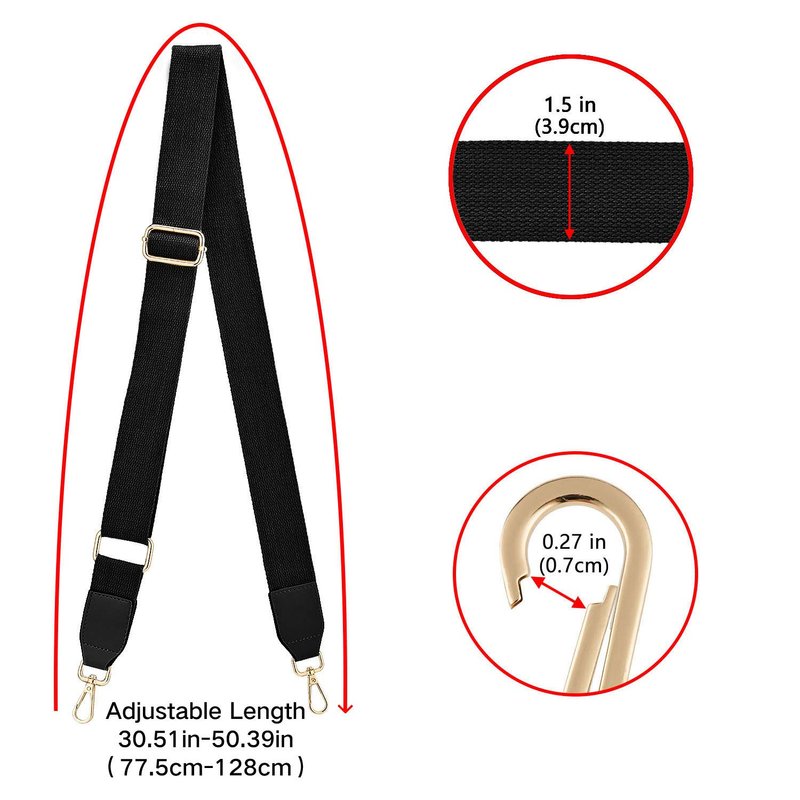 DEVPSISR Wide Shoulder Purse Strap Replacement Adjustable Belt Canvas Bag Crossbody Handbag (Leather Buckle-Black)