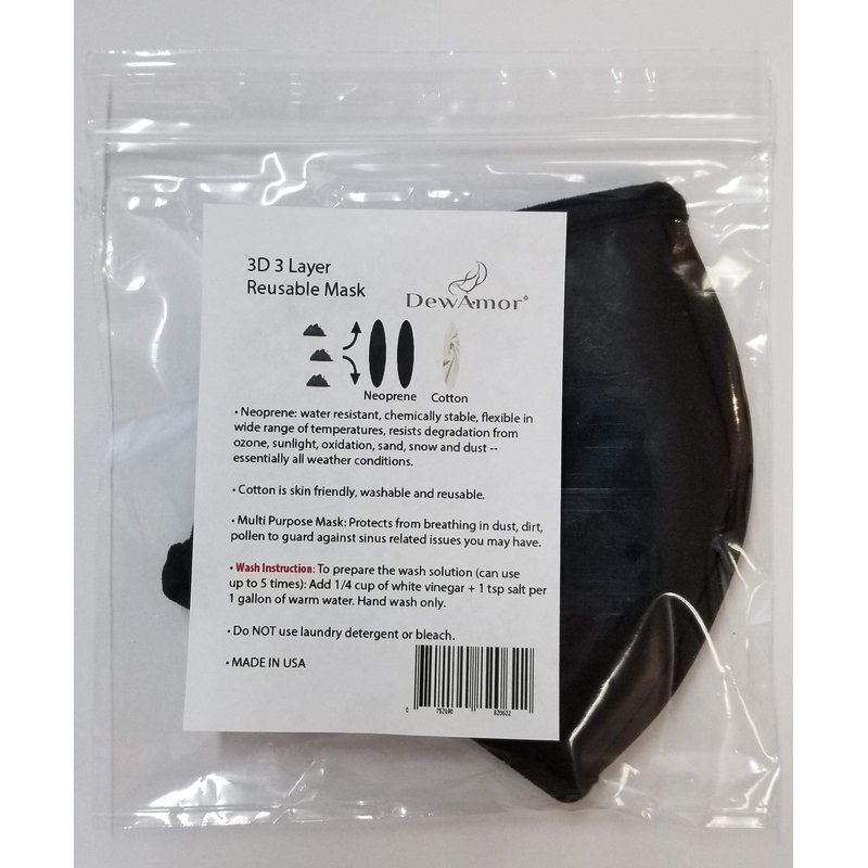 DewAmor Reusable, Washable Neoprene/Cotton Face Mask Protection from Dust, Pollen, Pet Dander and other Airborne Irritants(Black)