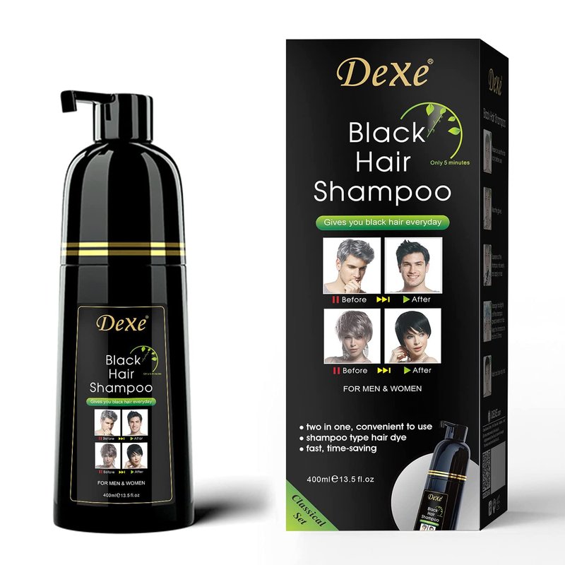 Dexe Hair Dye Shampoo 13.5 Fl Oz, Semi-Permanent Black Hair Dye, Hair Color Shampoo, Black Hair Shampoo For Men & Women, Mild Plant Formula Black Hair Dye Shampoo, 100% Gray Coverage (black)