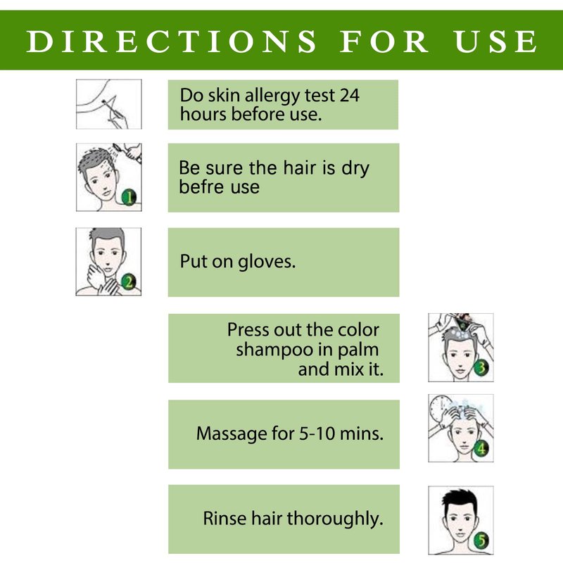 - INSTANT BLACK HAIR DYE: This product is simple and convenient to use, you can dye hair at home, just need to put on gloves, and use it the same as normal shampoo, wait for only 5-10 minutes, you will get the hair color you want.