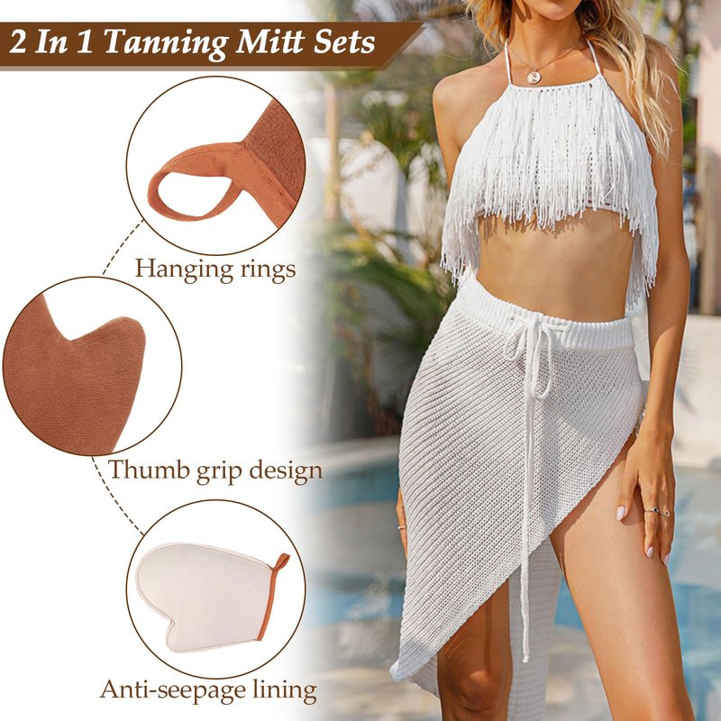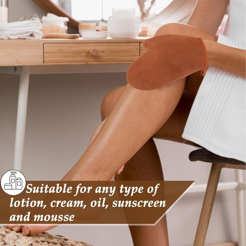 - [Easy to Use] Simply slide your hand into the self tanner mitt, apply a small amount of self-tan mousse or lotion to the mitt, and apply in circular motions all over your body. Achieve a flawless, streak-free tan with ease, leaving your skin looking refreshed and radiant.