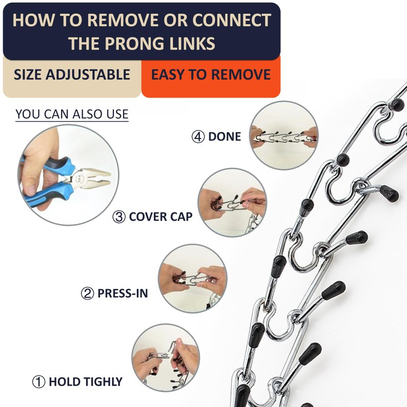 - 【Safety】-- This pinch collar are smooth and rounded to ensure that no harm comes to your pet, and provides gentle oppression sensation to train them which is similar to how a mother dog corrects her puppies using her teeth, and we also provide extra comfort rubber tips x30 and Extra Link x1.