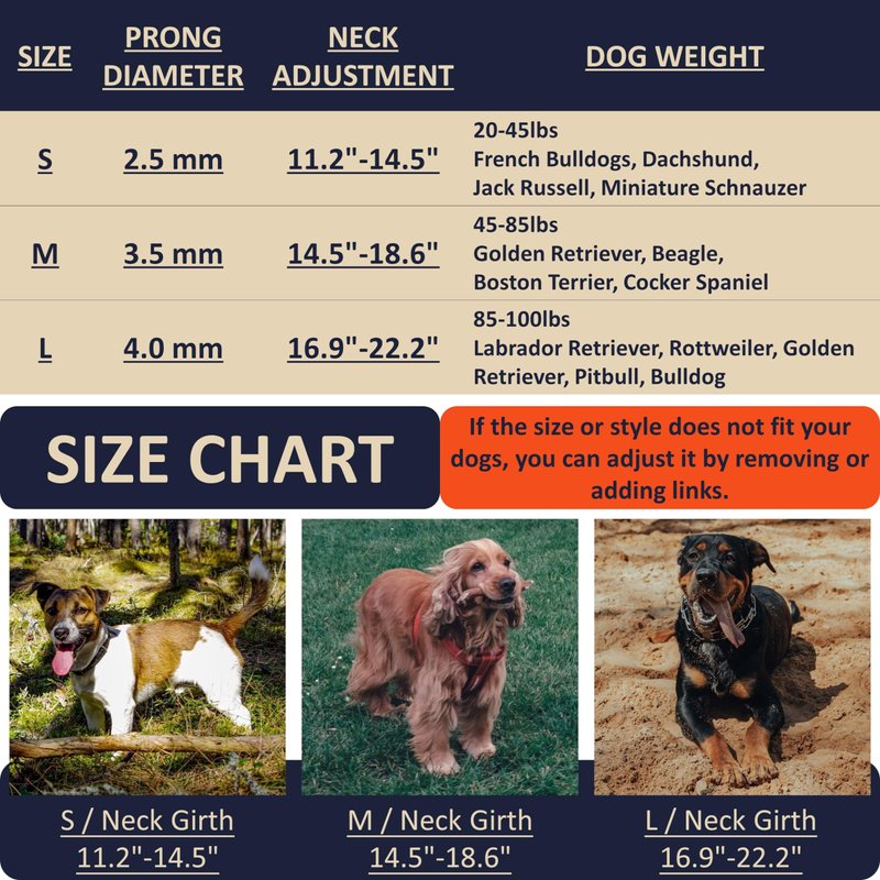 - 【Size Adjustable】-- We provide 3 optional sizes, and you also can customize the size by adding or removing links. Increased rust resistance as it will not rust even if the surface is damaged, has a high-gloss surface, it doesn’t stain light fur in 9 out of 10 cases.