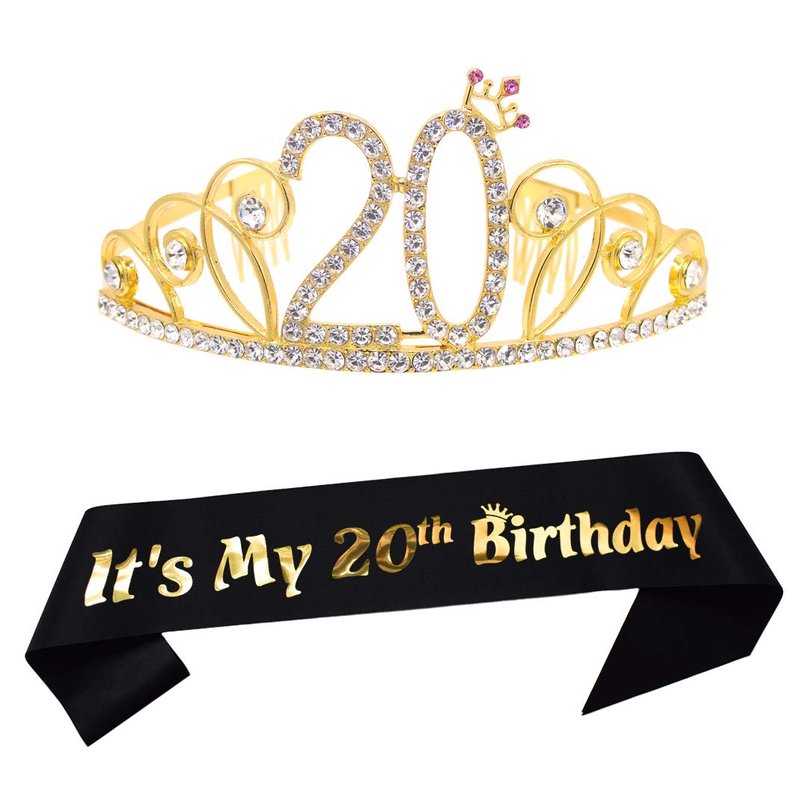 - The Perfect Birthday Party Set - Includes 1pcs Black “It's My 20th Birthday” birthday sash and 20-year-old Gold tiara. It is a wonderful gift for the girl 20th birthday.