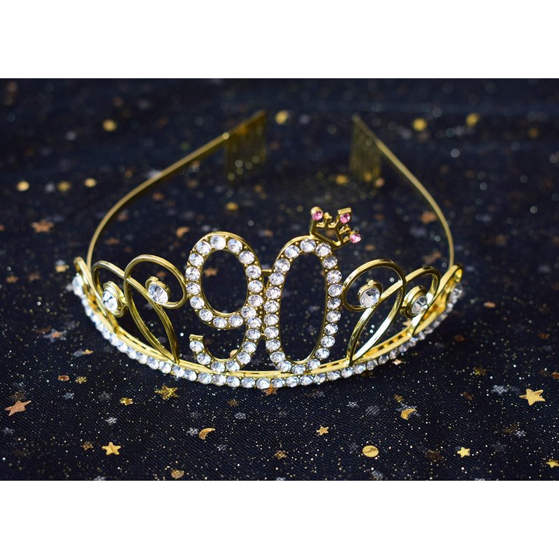- The Perfect Birthday Party Set - Includes 1pcs “90 Fabulous”birthday sash and 90-year-old gold tiara. It is a wonderful gift for the lady’s 90th birthday.