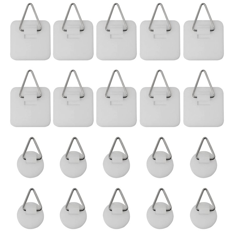 - The package contains: 20pcs 2 shapes of adhesive hooks, round and square, sufficient quantity, variety of shapes to meet your daily use and replacement.