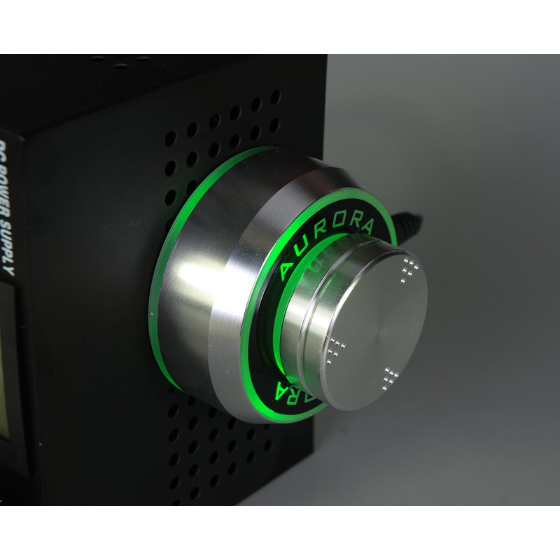 Color: Silver Dimensions: 2-7/8" diameter, 1-3/4" height Weight: 0.3KG Output Voltage: 1.5v - 17v Compatible with all coil and rotary tattoo machines User-friendly rotary control push knob to turn on/off, switch modes, and change voltage Color changing voltage indicator Two foot pedal modes - maintained or momentary Jump-start mode feature for rotary tattoo machines 1/4" mono jack inputs for standard clip cord and foot pedal (foot pedal not required to run) CNC-machined anodized aluminum housing Built-in magnets and silicone grips allow for use on a variety surfaces Power adapter include