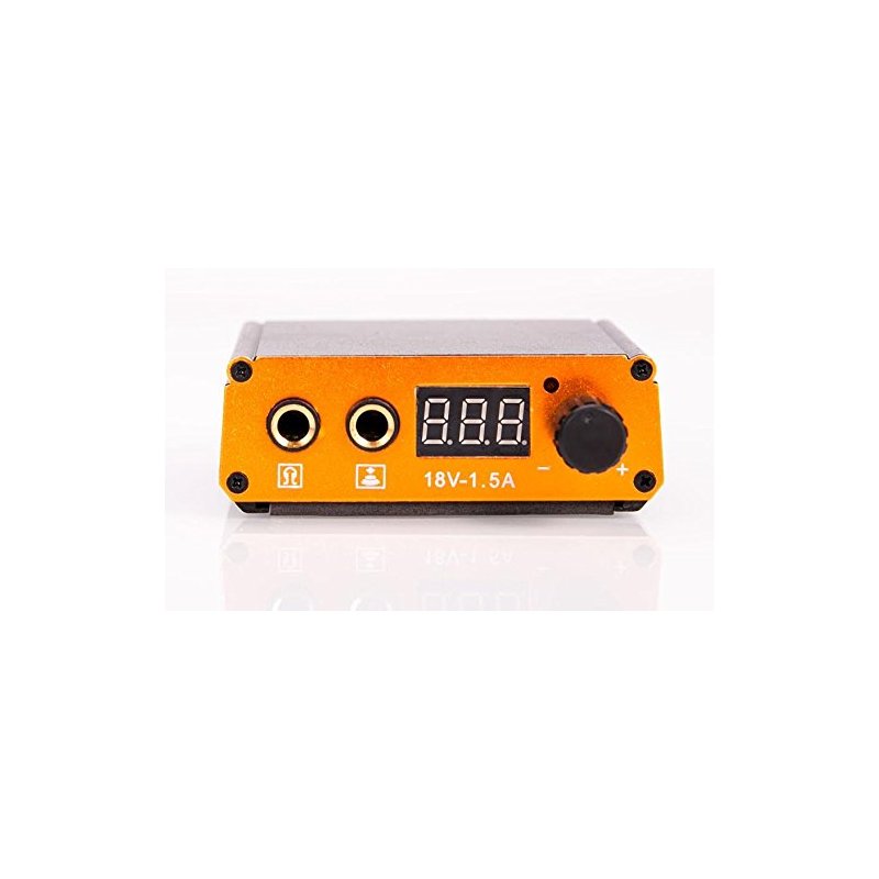 This new P054 tattoo power supply has turn knob for easy voltage adjustments, digital voltage display, and continuous pedal mode. This magnetic power supply contains a built in magnet for easy mount on metal surface. The base of the power supply has a nonskid material, simply place the power supply on flat surface and have no worry of your power supply sliding around on the table. This power supply has a continuous pedal mode built in, which acts as a on and off switch for your foot pedal instead of having to press on the foot pedal constantly. To turn on the continuous pedal mode, press the turn knob once, a red light indicator will turn on next to the knob, this indicates the continuous pedal mode is on. To use this feature, tap on your foot pedal once, and it will stay on. Tap once again to turn off the pedal. Press the knob to turn off the continuous pedal mode.