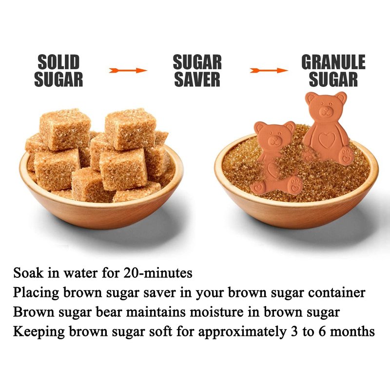 - 【Why keeps brown sugar soften】The brown sugar bear keeper is made from terra cotta clay that is porous enough to absorb water, which Helps keep your brown sugar from drying out and hardening!