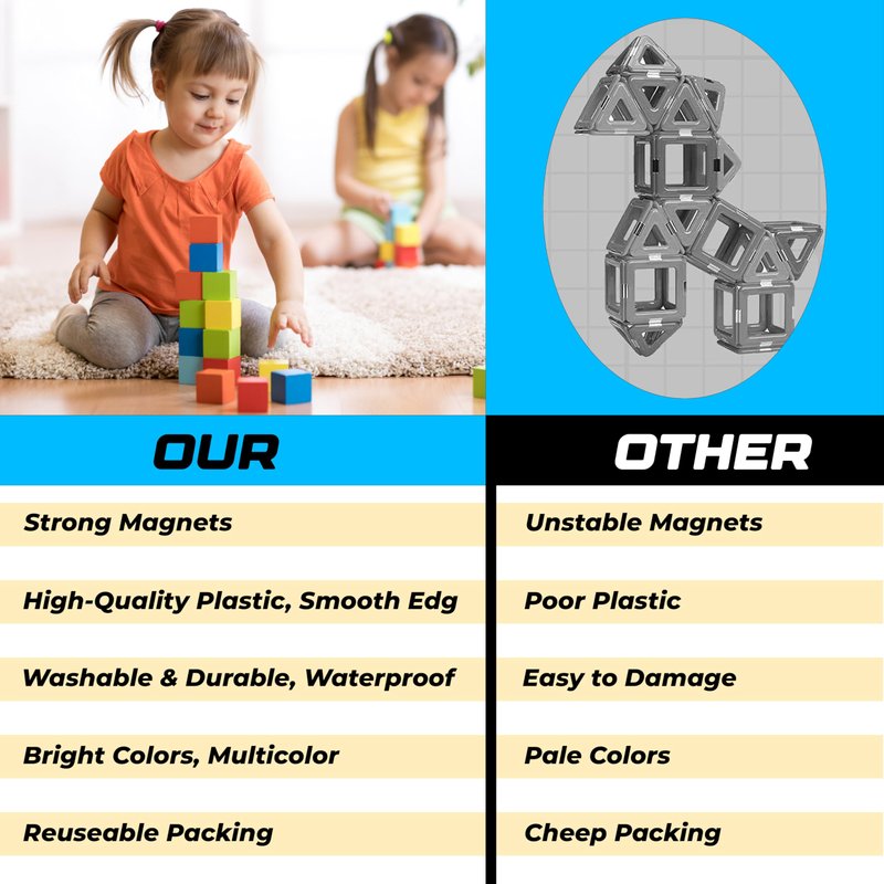 - STEM Education Toys: Inspire your child's curiosity and creativity with our magnetic building blocks for kids. These fun and educational toys promote problem-solving, spatial awareness, and motor skills development.