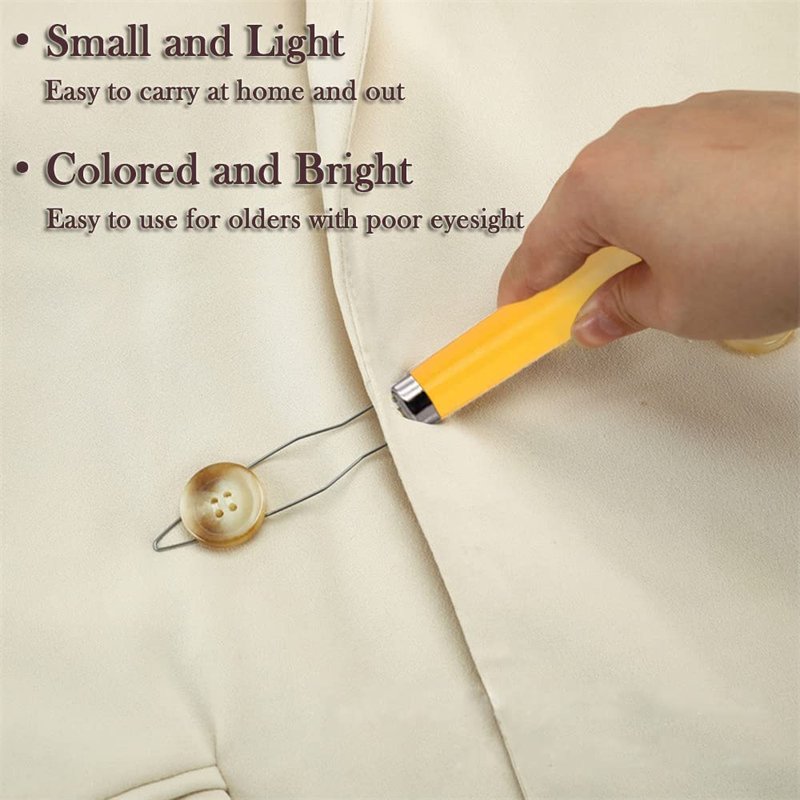 - 【Professional Design】Easily sliding through small buttonholes, the metal loop of this sewing accessory is smooth and will not snag the fabric or buttonhole threads. The metal loop narrows at the tip to lock the button in place, making pulling it through the buttonhole easier.