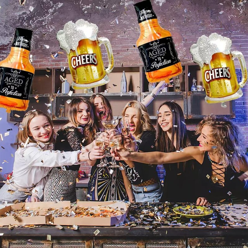 - Pakage Include:3 pcs whiskey bottle and 3 pcs beer cup foil balloons.
