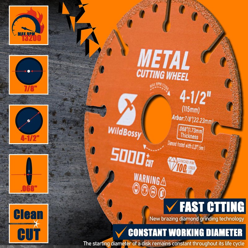 - ✅【SHARP BLADE】WildBossy diamond cutting blade cuts fast and straight with uniform grinding force, good flatness, and less chips. It's also more durable than other blades.