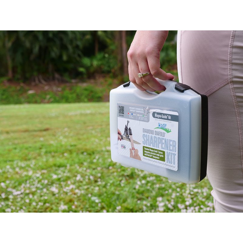 - Magnetic Angle Guide: Patented magnetic knife sharpening guide attachment is designed to work with any DMT double-sided Diafold folding sharpening stone