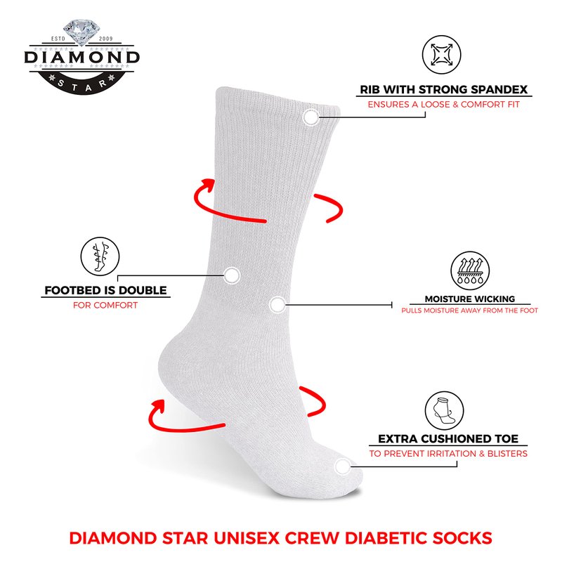 Diamond Star Diabetic Socks, Non-Binding Circulatory Cushion Cotton Crew Diabetic Socks for Men Women