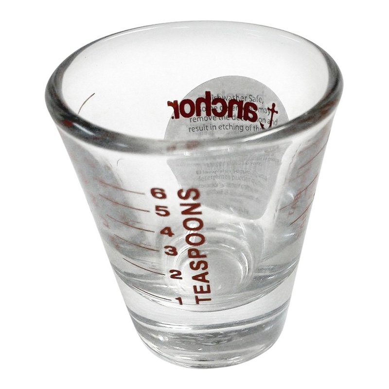 Heavy base, similar to a shot glass with Oz. Tbls. Tsps. markings