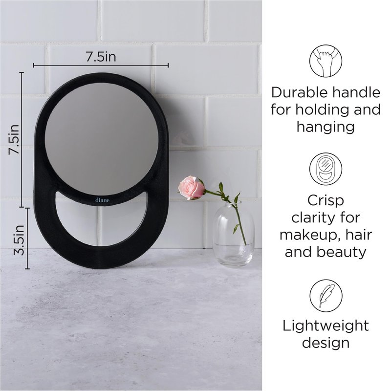 Diane Professional Quality Hand Mirror – Hand Held Mirror with Handle, Single Sided Vanity Makeup Mirror for Women, Men, Salon, Barber, Shaving, and Travel, Medium 7.5" x 11" In Black