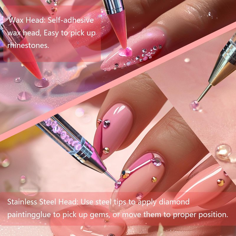 - Rhinestone Applicator: the rhinestone pen is not only suitable for picking nail rhinestones, but also for picking crystal, studs, gems, caviar, beads jewel, diamond, stones, sequins, creating beautiful DIY designs.