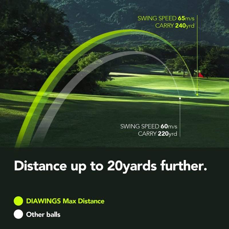 Diawings Max Distance / Premium Golf Balls / Anti-Slice / Low Spin / Long Distance Distance being an issue? Diawings Max Distance offers high velocity ball speed and low spin for distance. Giving you the extra edge to lower your score.