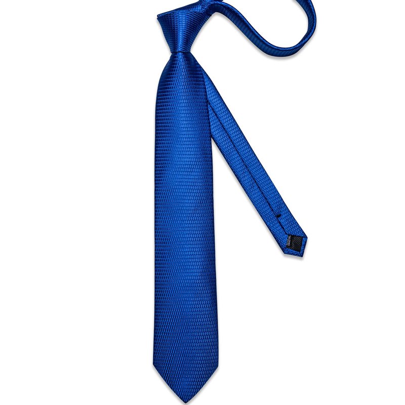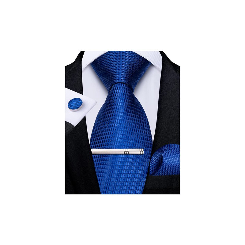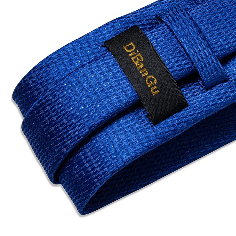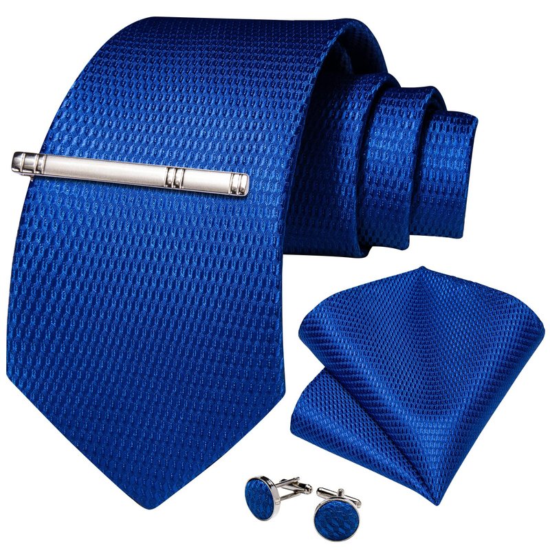 DiBanGu Men's Solid Royal Blue Ties Wedding Plain Necktie Pocket Square Cufflink Tie Clip Set