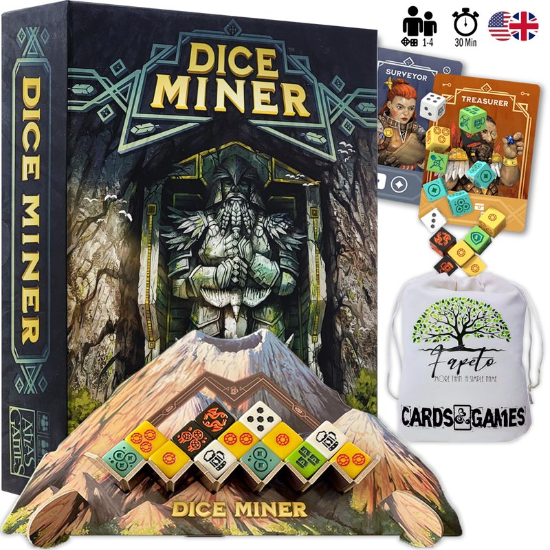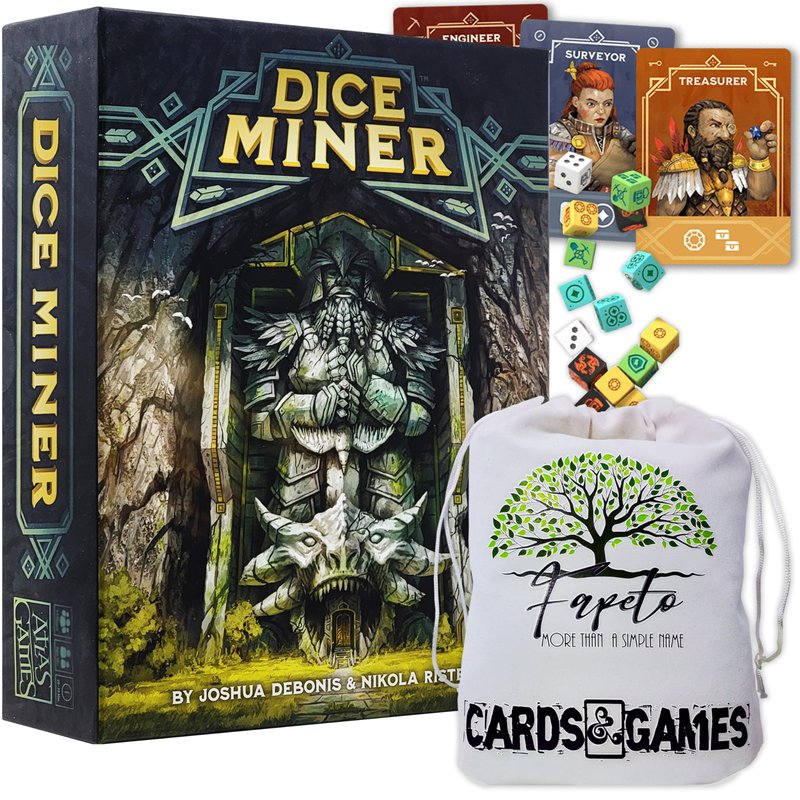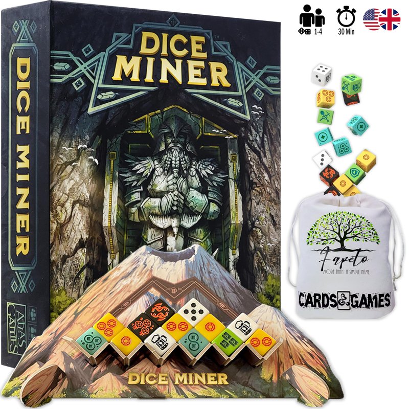 - ★ ATLAS GAMES Dice Miner Board Game (Each dwarf hero drafts a set of handmade dice from a special mountain component)