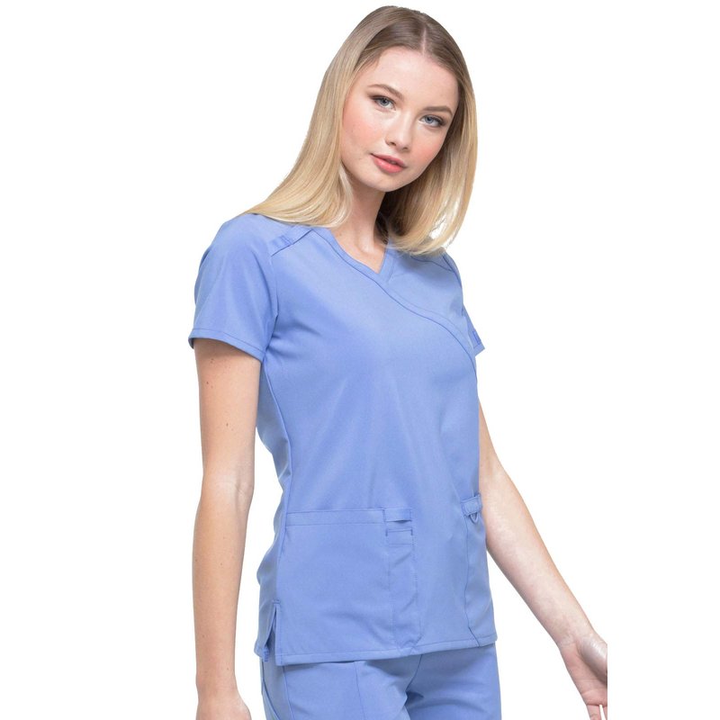 Dickies EDS Essentials, Mock Wrap Top Scrubs for Women with Four-Way Stretch and Moisture Wicking DK625, M, Ciel