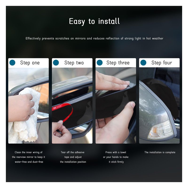 - 【Easy Installation】: The rearview mirror sunshade cover is self-adhesive and equipped with 3M tape. First, clean the rearview mirror mounting position and keep it dry. Then, tear off the backing glue, and adjust the position for pasting and fixing. Finally, just press it with a towel or hand to make it firm.