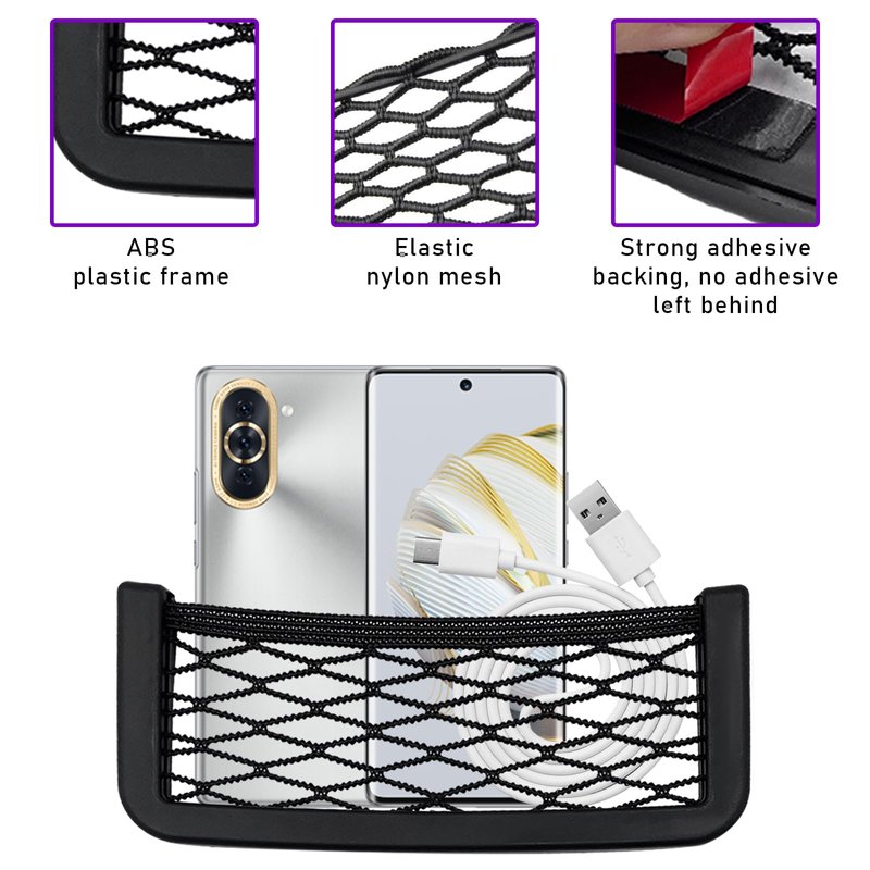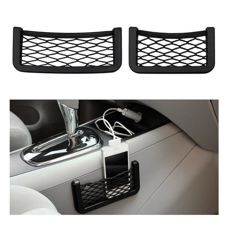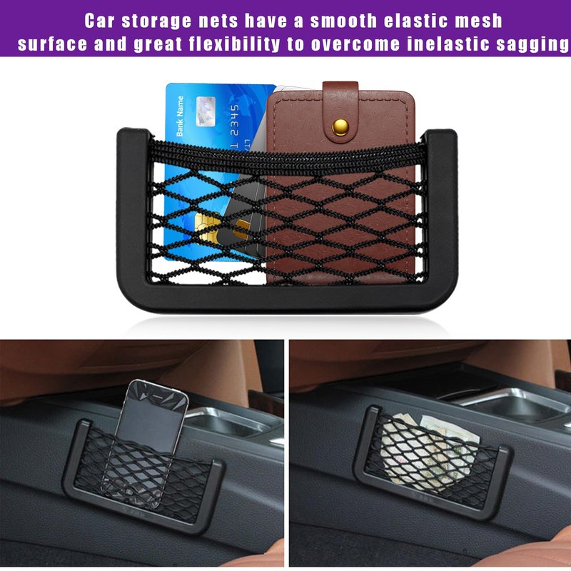 Dickno 2 PCS Car Pocket Phone Net, Universal Seat Side Storage Net Bag with Double Sided Tape, Automotive Frame Storage Net Pocket, Vehicle Interior Organizer for Phone Purse Bag