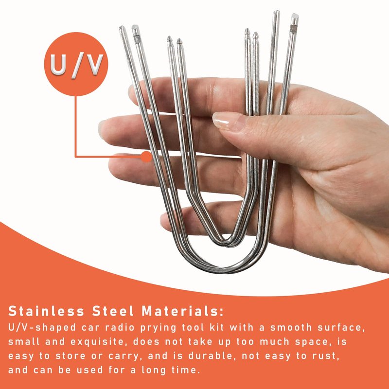 - 【Universal Fit】: The U-shaped tool is about 4.3 × 2 inches, and the V-shaped tool is about 3.7 × 1.1 inches. Suitable for most cars equipped with factory radios, such as sedans, motorhomes, station wagons, mpvs and suvs. Please check the size and shape before buying.