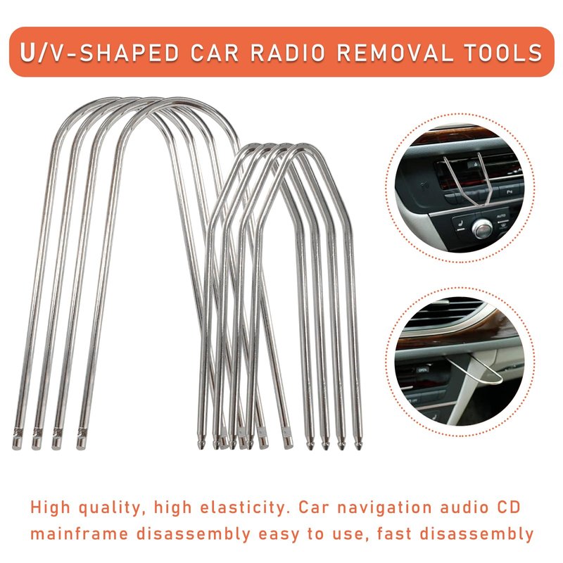 - 【Easy to Use】: This u-shaped car radio removal tool allows you to remove your car stereo easily and quickly. Simply insert a tool into each side of your car stereo and carefully pull the radio out of the panel. The removal process is quick and easy without damaging or scratching the main engine.