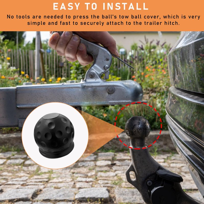 - 【Easy to Use】: It is easy to be installed and can be done in a few seconds. You just need to press the rubber cover onto the trailer ball, which is very convenient and fast. It can be firmly attached to the trailer ball. When it's time to hang up the trailer, it can be easily removed and conveniently stored in your toolbox.