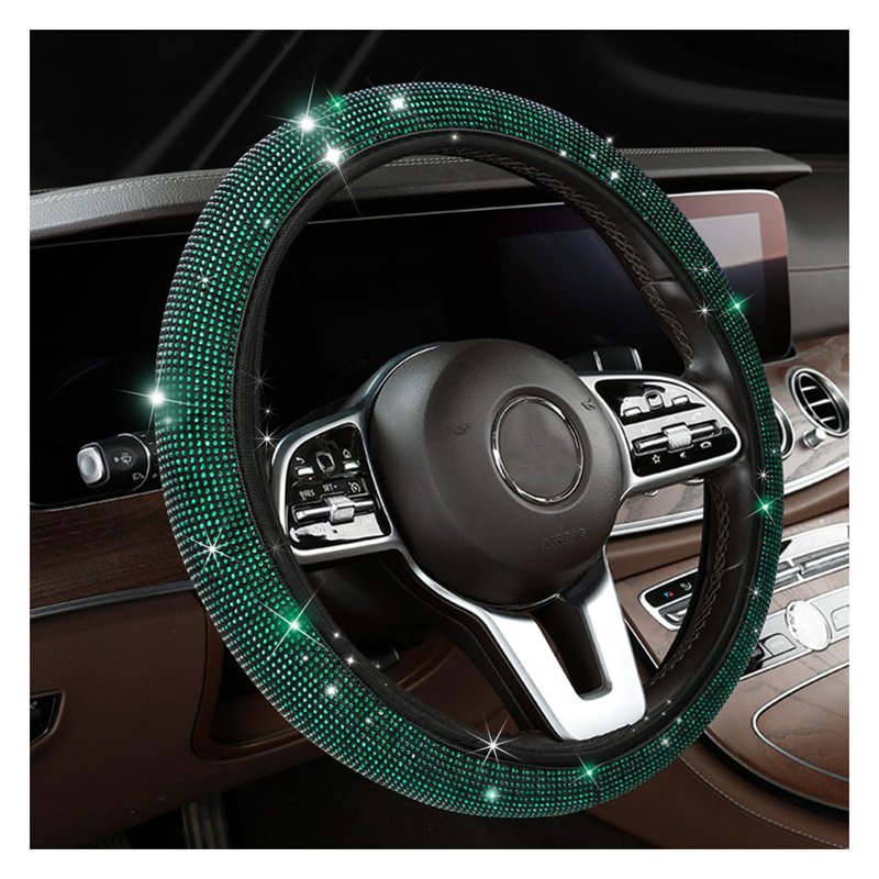 Dickno Bling Steering Wheel Cover, 15 Inch Crystal Diamond Car Steering Wheel Protector for Women Girls, Sparkling Anti-Slip Steering Wheel Decor Accessories for Most Vehicles (Green)