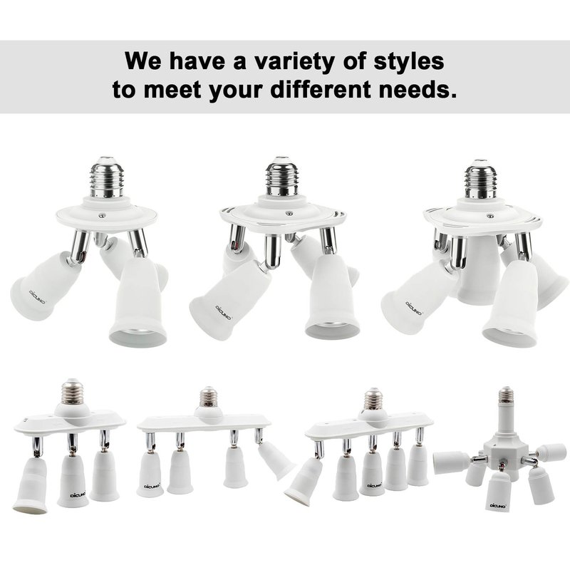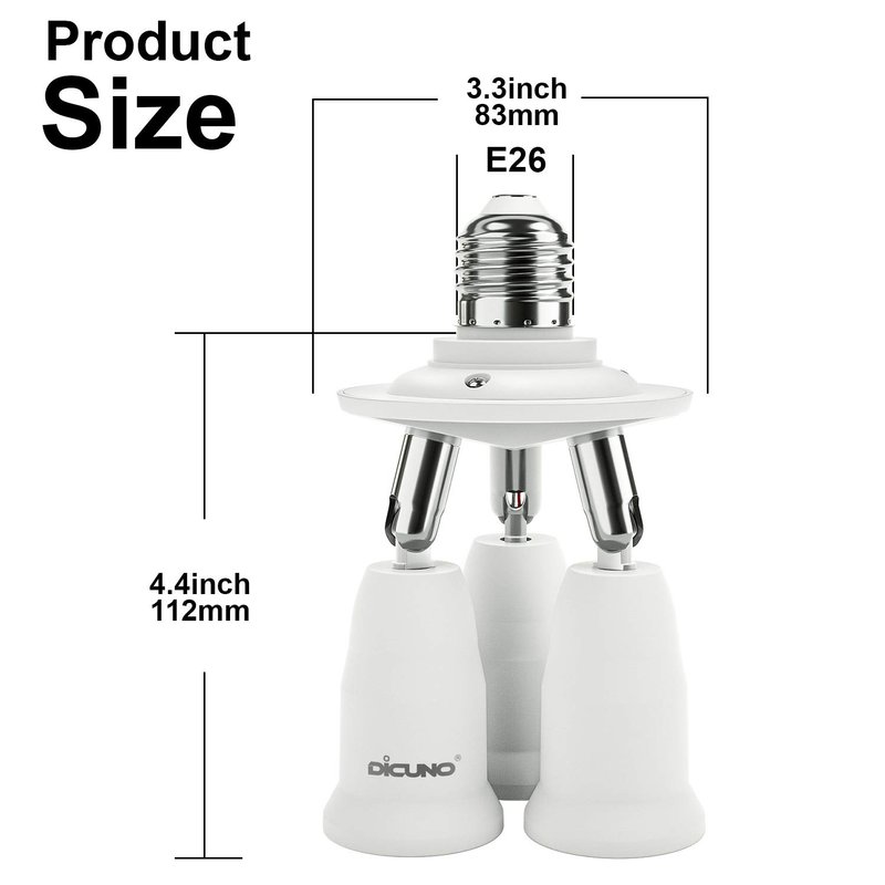 DiCUNO 3 in 1 E26 socket splitter adapter safe and easy to install, enlarge the chandelier socket to suitable for studio daylight bulbs.
