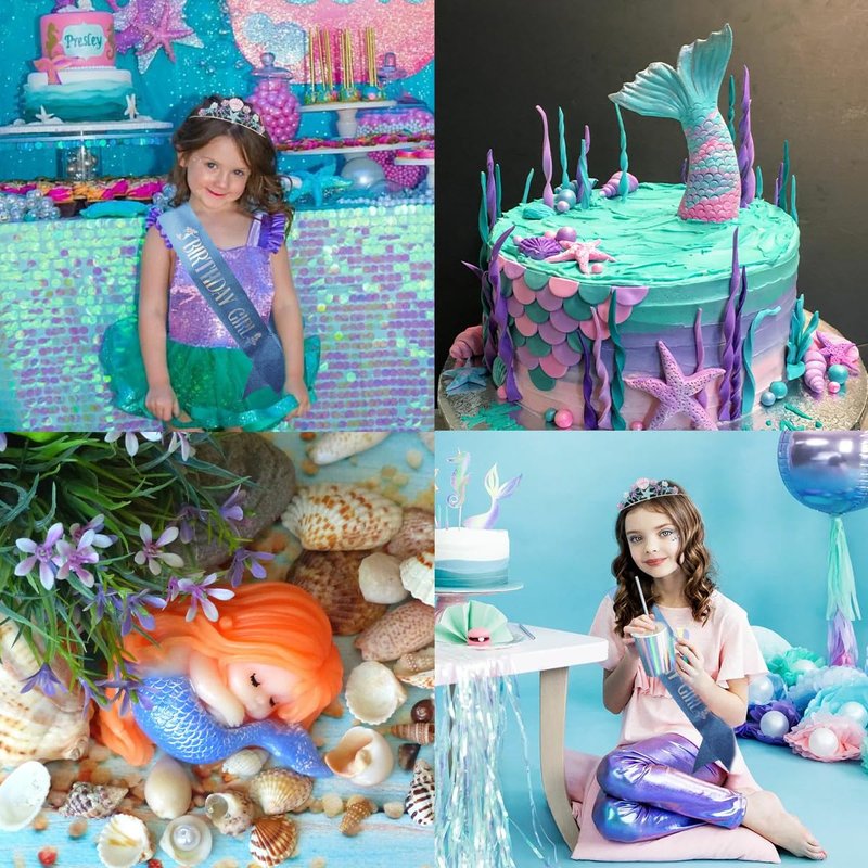 - 🧜♀️Mermaid Birthday Theme - A birthday tiara with reflective seashell and pretty starfish combined with a shiny birthday sash with mermaid print, all for a mermaid theme birthday party for girls! Ocean blue and pink, two colors for your preference.