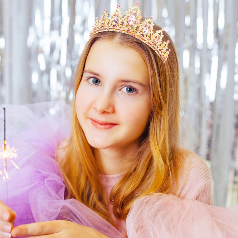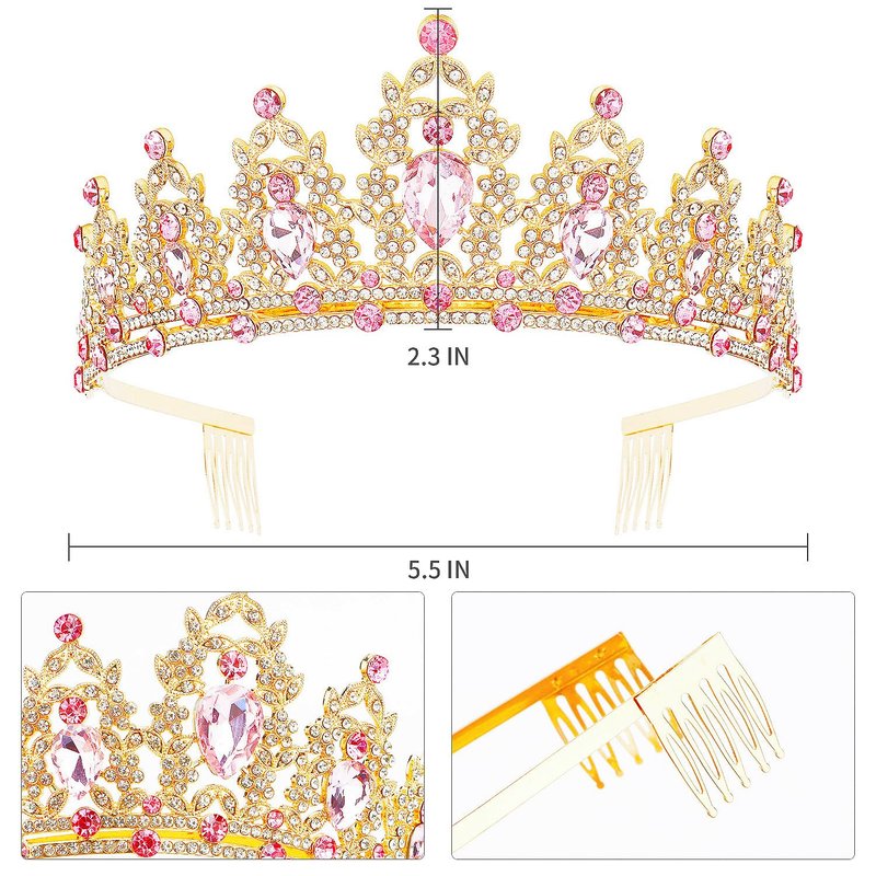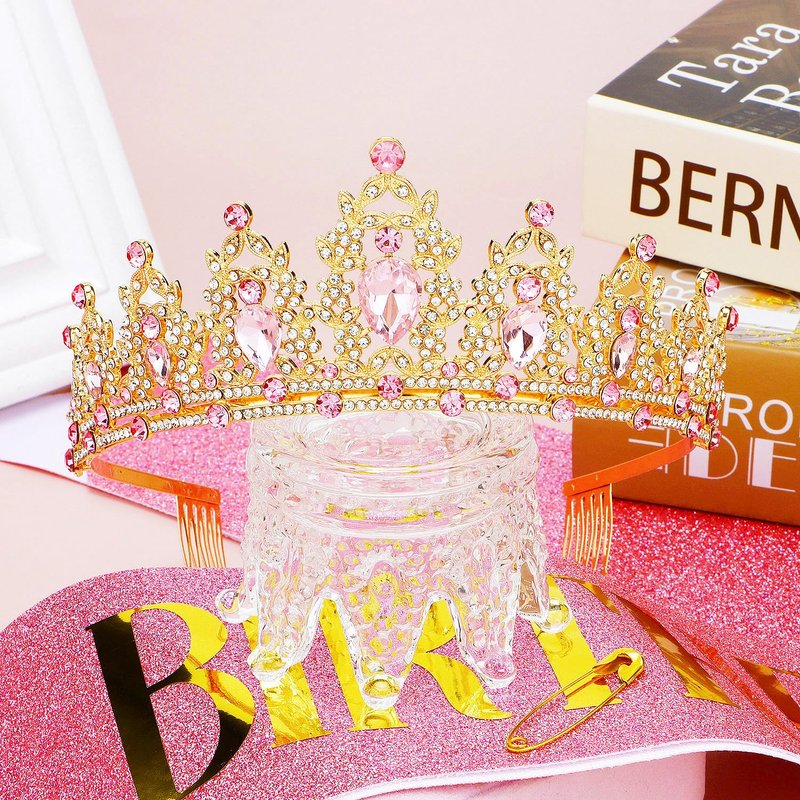 - Stunning - Beautiful birthday pink and gold crown tiara made with shiny rhinestones. Perfect for birthday party for girls and women, add you a sense of nobility, make you the one and the only princess of the day.