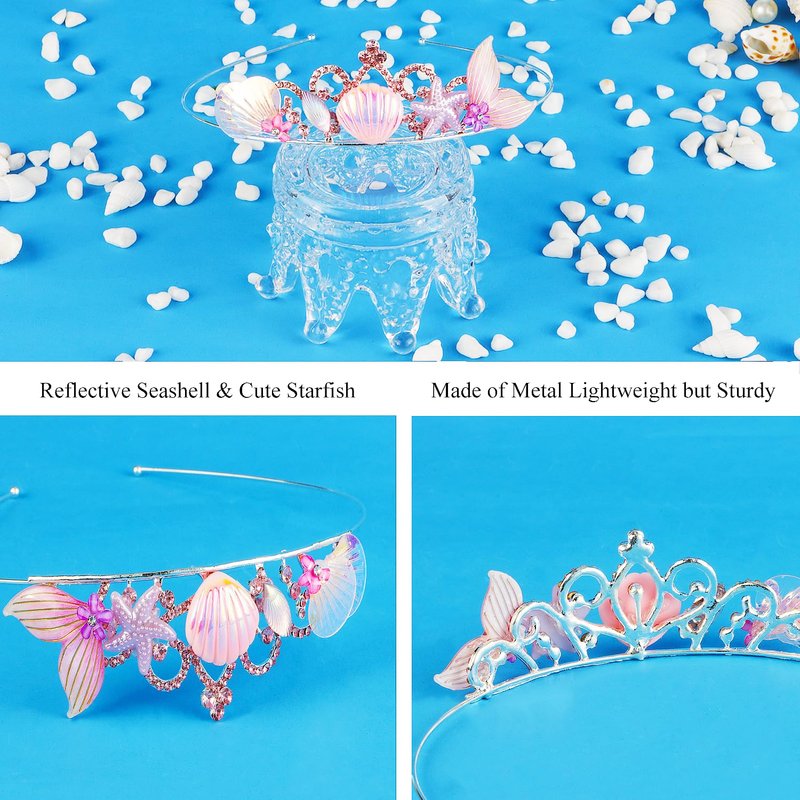 - 🧜♀️Ocean Theme Birthday Crown - Cute ocean elements add on a metal crown base, the cute birthday tiara looks delicate and sturdy. And it’s lightweight and comfortable for girls wearing all day for her birthday.