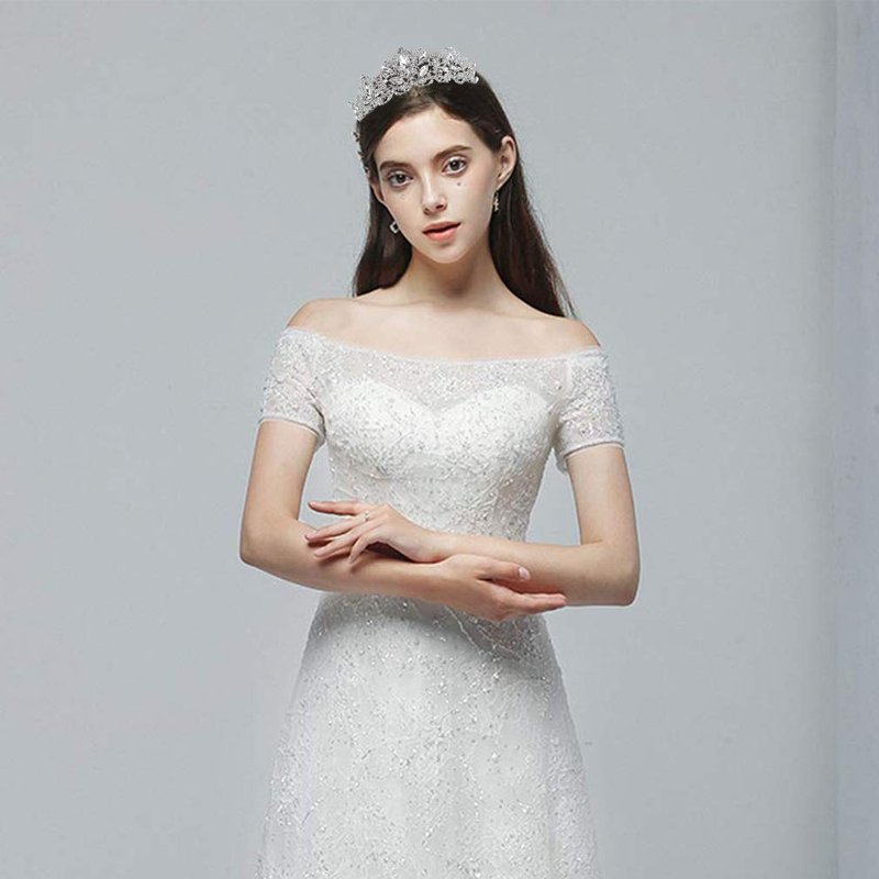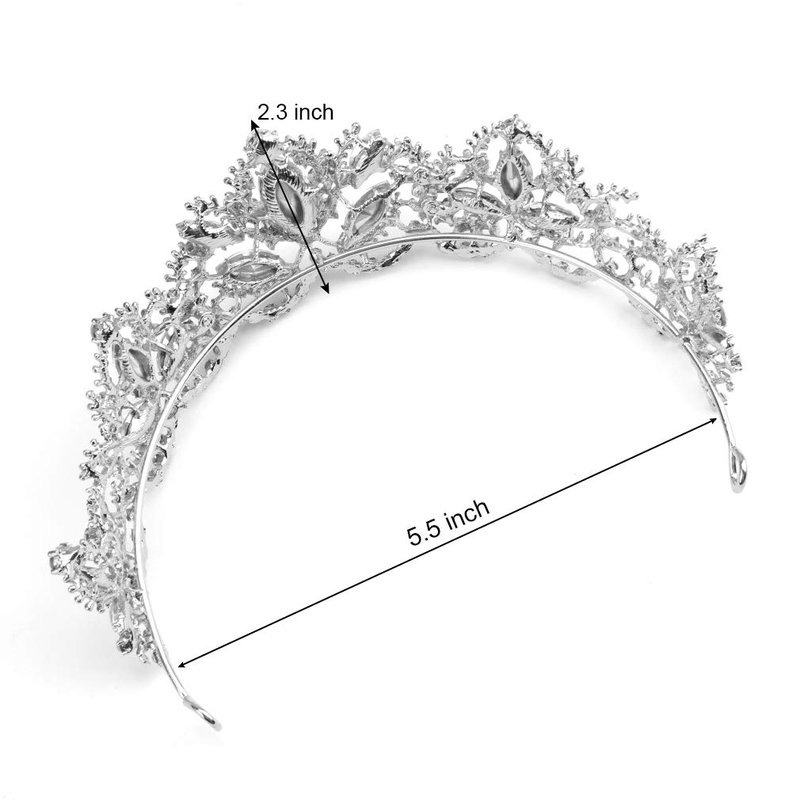 - Bridal Crown Size: Approximately 2.4 inches (6 cm) in height, 6.3 inches (16 cm) in diameter. And crowns is easy to wear, loop-comb design help to attach the crown to your head easily,not easy to fall off.