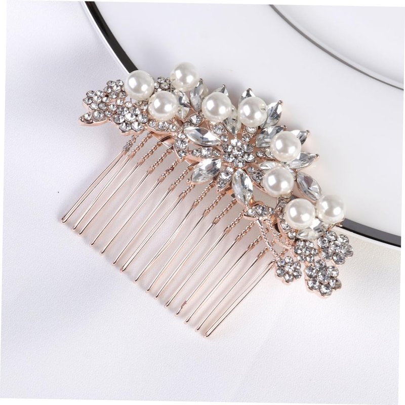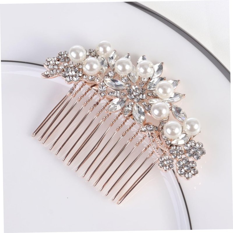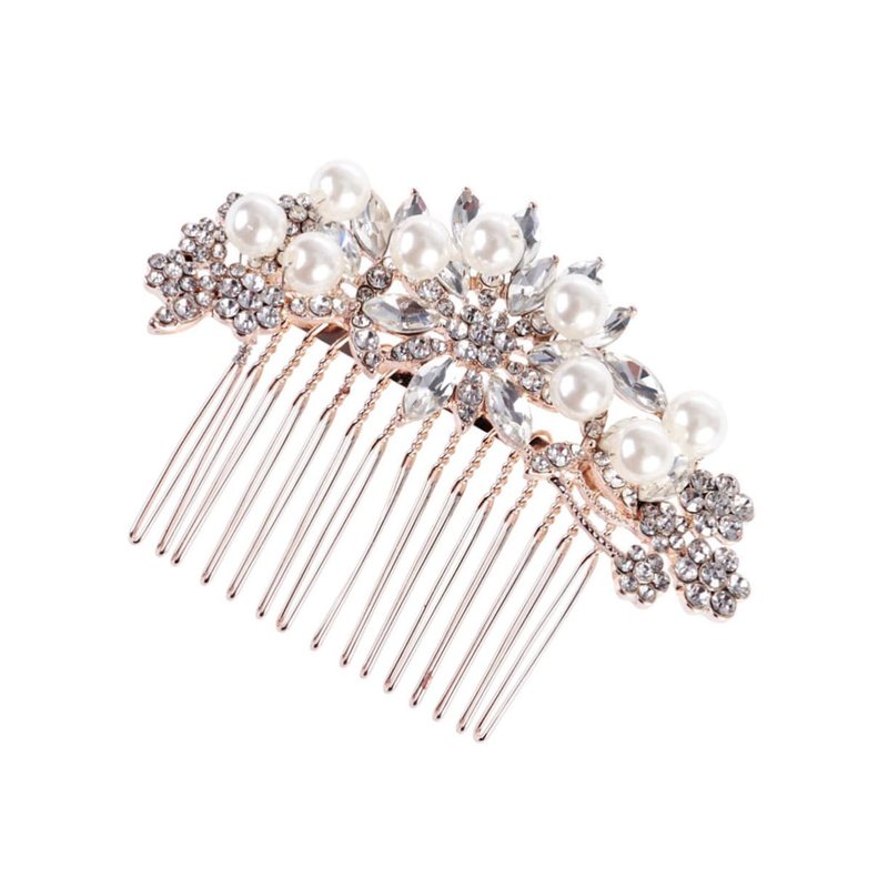1 x Elegant Bridal Hair Comb Simulated Pearl Crystal Wedding Hair Accessories (Rose Gold)