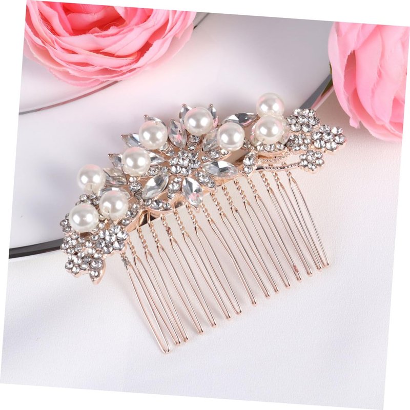 Didiseaon Bridesmaid Hair Accessories Rhinestone Barrettes Bridal Headpiece Bridal Hair Comb Pearl Hair Accessories Bride Hair Comb Women Hair Comb Tiara Women's Hair Dryer Wedding