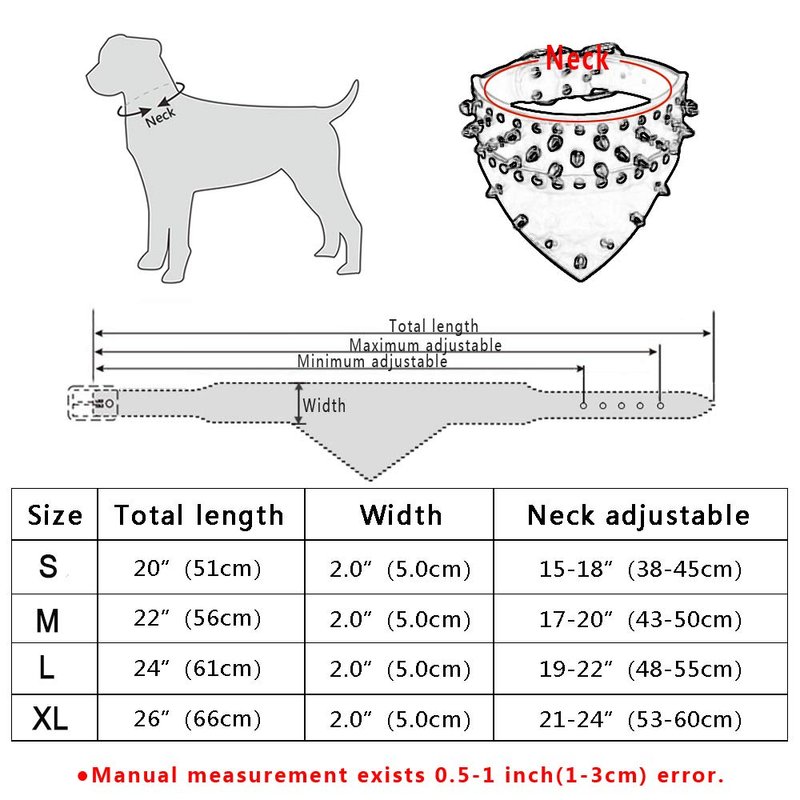 - Spiked Studded design,steel buckle,scarf style,protect your dog from biting.