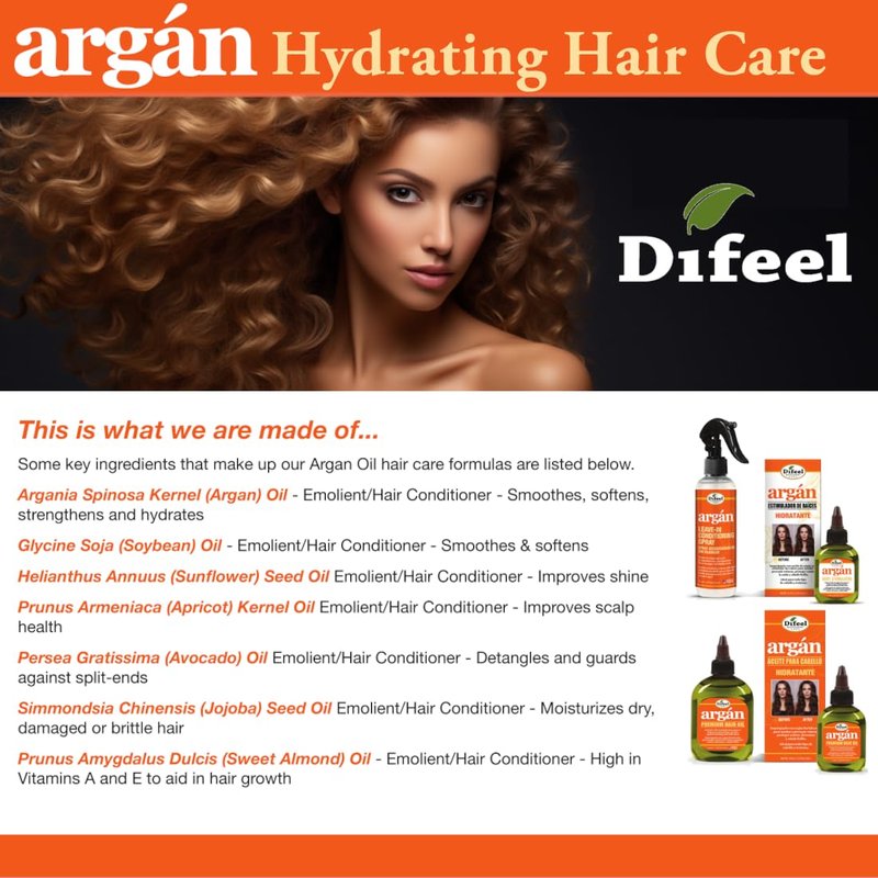 - DEEP CONDITIONING TREATMENT FOR DAMAGED HAIR: The benefits of Difeel Argan Hydrating Hair Mask Include: Intensive Hydration - Difeel Argan Hydrating Hair Mask deeply moisturizes and nourishes dry hair, damaged hair. Repairs and Strengthens - Difeel Argan Hydrating Hair Mask helps repair and strengthen hair, reducing breakage.